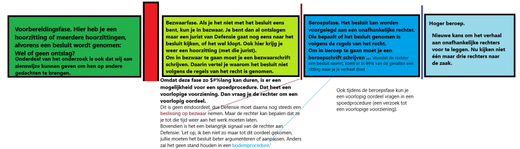 Daarna volgt de fase van bezwaar tegen ontslag. Je bent dan al ontslagen, dus je hebt je defpas moeten inleveren, krijgt geen loon meer en moet voor deze periode zelf een ziektekostenverzekering regelen.